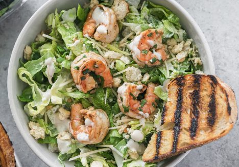 Lemon Herb Shrimp Caesar Salad With Grilled Garlic Bread
