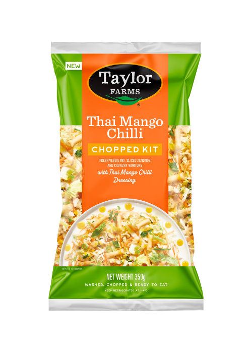 Our Thai Mango Chilli Chopped Kit is a vibrant mix of crisp cabbage, carrot, lettuce, spring onion, and fresh herbs, topped with crunchy wonton strips and sliced almonds. Toss it with our mango chilli dressing for a FRESH, BOLD, and IRRESISTIBLE taste experience that turns every meal into a mini getaway.